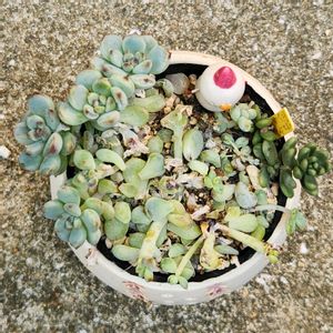 素焼きに入れとった子たちが弱っとったけん 植え替えて大きくできたのはこの子だけ あとはチビのまんま 葉挿しっ子たちも大きくしきらんで チビのまんま 2022年11月の実生 札間違えとる