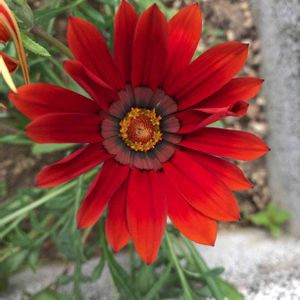 🪴草花たち その36 ガザニア 公園の花壇。 ガザニアの花が色鮮やかに咲いていました。 蒸し暑さも忘れさせてくれます(´∀`*) ⛅️ *・゜゚・*:.。..。.:*・'🎡'・*:.。.🎠 .。.:*・゜゚・* ⌘ Mein Lernmemo ⌘ 🔸科名・属名 キク科 クンショウギク属(ガザニア属) 🔸学名 Gazania rigens 🔸英名 Gazania 🔸別名 クンショウギク(勲章菊) 🔸由来 アリストテレスなどのギリシャの古典書物を ラテン語に翻訳したギリシャ人「ガザ」の名前 に由来する。 🔸原産地 南アフリカ 🔸花期 4月〜10月上旬 🔸花色 白 黄 オレンジ 赤 ピンク 紫 🔸特徴 半耐寒性の多年草で暖地では宿根草になるが、 日本の寒い地域では冬に枯れてしまい、暖地で は夏の高温多湿で弱るため、1年草。 宿根ガザニアとして販売されている種は耐暑性、 耐寒性に優れ日本でも多年草として栽培し易い。 ガザニアは、勲章のように鮮やかな花で、日光が 当たると花が開き、夕方から夜や曇りの日は閉じ る性質をもっている。 鮮やかな色で光沢のある花弁は太陽に当たると キラキラと輝き、美しい。 また照り葉や銀葉の品種もあり葉の美しさも特徴。