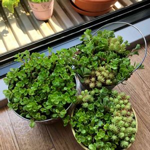 友人からいただいた 丸葉マンネンソウ!じょうろ型のブリキに植えて一年。なんにも見えないくらいモリモリになってくれました! 🙌🙌