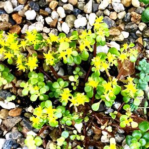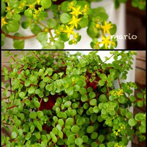 こんにちは☀️ 小花のような形の丸い葉の マルバマンネングサが愛らしい お花が咲き始めました