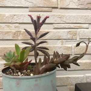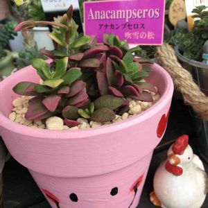 アナカンプセロス 吹雪の松。 自分なんかが本当生意気なんですけど、ちょっとここで整理しておきたいです。 吹雪の松はこんなにも地味なんです❗ ピンクが入ってるのは、これの突然変異の桜吹雪。 黄色が入った突然変異が吹雪の松錦。 葉の表がグリーンで裏側が小豆色がかった紫なら春夢殿。 GSで検索しても全部桜吹雪になってしまう。 ちょうど趣味の園芸の8月号で育てやすいアナカンプセロスの特集がありますので、疑わしいと思われる方は見てみて下さい🐈