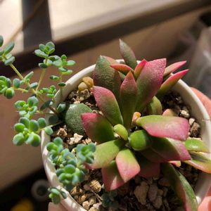 45さんから種を頂いて 種まきから1年程経過 朝晩の気温差で色付いてきました( ˶ˆ꒳ˆ˵ ) 手前が桜吹雪、奥が吹雪の松 多肉の種からはのんびり、ゆっくりの 成長なんですね⁽⁽٩(๑˃̶͈̀ ᗨ ˂̶͈́)۶⁾⁾