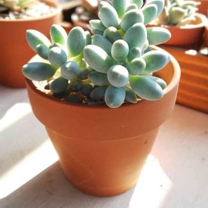 🏷毎月5日は群生の日に参加させて頂きます ロッティとバニラビズ 昨年の夏にジュレてしまって泣く泣くカットした群生さん ここまで復活しました😊 もうダメだろうなぁと諦めていた元株から👶が出て来てくれて嬉しい😆 手前のロッティは秋にお迎えした子です バニラビズもまた足元から👶が出て来て群生になりました💕 ベビーフィンガーも真夏に怪しい色になりカットしたんですが春にポコポコ👶が😍 ダメだと思ってたのに復活!嬉しすぎます✨ なかなか大きくならなかったラウレンシス 鉢増しして肥料も少しプラスしたら育ち始めました😊葉も伸びてだいぶ夏顔ですが💦 冬はキュッとしてしまうので今のうちに大きく成長してもらいたいです 先週末地元のイベントに行ってきました😊 今年は他県のイベントと重なったようで出店者さんが少し少なかったような🤔 1番のお目当てはナコリ!アンティークさんのリメイク鉢だったのですが2日目に行ったので残りわずか💦思ってたより小さめのものしかGETできませんでした😅 でも味があって素適です✨ 寄せ植えしてから載せようと思ったけど しばらく隔離生活になってしまったので… 今週 同僚がコロナ陽性になってしまい そして私も😢 初コロちゃんです 美容院もキャンセル友人との食事会もキャンセルです😥 残業続きで同僚も私も免疫力が落ちてしまってたんでしょうね😥 ただでさえ人手が足りないのにお休みになってしまって職場の同僚たちには申し訳ないですが💦しばらくゆっくり出来そうです ただ心配なのは庭の多肉たち…多肉小屋はサーキュレーターは付けてもらってるけど見にも行けない😥水が足りなそうな子に少しお水もあげたい 多肉は枯れはしないけど気温高いから水切りすぎると焦げるだろうなぁ🥺