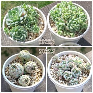 今年の2月から育てているヴィンセントカトーhyb。夏に弱いと聞いて保険株を作り夏に備えてましたが無事に夏越し出来たようでホッとしてます😊 今年の夏は猛暑で例年通りの水遣りではとても多肉たちが耐えられなさそうで翌日の天気と気温をチェックし水の量も多肉ごとに変えながらマメに水遣りでの夏越しとなりました💦 それでも☆になってしまった多肉の数は過去最多でした😥 9月になり真夏のような暑さはなくなりましたが陽射しにはまだまだ注意が必要で😥 最近は雨や曇天続きでしたが晴れると葉焼けが心配です😵💫 昨年は10月でも暑い日があってなかなか日除けが外せなかったなぁ😵 陽射しも水遣りも気にしなくて良い気候に早くならないかな😊