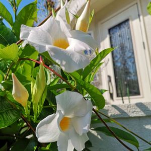 フェンスにつたって元気に咲いてくれてます🎵朝の水やりが楽しい😆💕✨
