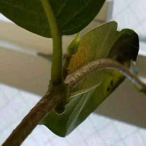 冬越し中のサンパラソルに葉っぱが出てきた。