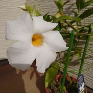 サンパラソルジャイアント🌸 名前の通り11㎝ありました❣️ ベランダの手すりの方に行きたいのを 毎日向きを変え😁やっと自分の支柱にツルを伸ばしてめでたく開花🌸 蕾もたくさん‼️ でっかいけどアサガオみたいでかわいい❤️