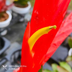 おはようございます♪ ハウスの中の #トラフアナナス が開花中♪ 真っ赤な穂に黄色い花弁が目立ちます。 いつもの出荷準備を進めていると、ポット底に #コウガイビル さん発見! ギャ〜って叫ばれること多いけど、ナメクジを退治してくれる益虫ですよ♪ #沖縄 #畑仕事 #ブロメリア