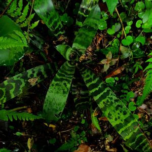 箕面公園昆虫館の放蝶園で見た 美しい植物😍 シマシマ模様の葉の植物は🤔💦 ネオレゲリア?ブロメリア?タンク…? エクメア?何かさっぱり分からず💦💦💦 難儀しましたが虎斑アナナスにたどり着き ました。