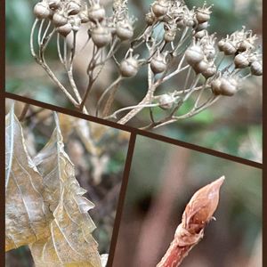 2/9 午後低山散歩🚶♀️🚶 コアジサイ(アジサイ科) ⬆️ 果実も可愛い💕 ↙️このギザギザの葉が好きです💕 ↘️冬芽 少し毛が生えています💕 花の時期が楽しみーーー💕