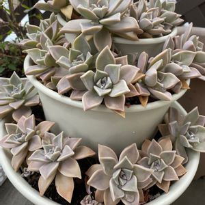 月花美人さん💓 年中このお色だけど葉っぱのエッジが滑らかで葉っぱの持ち上がり方が好きです💓 地味に葉挿し組もいて地味だけどだいすき🥰