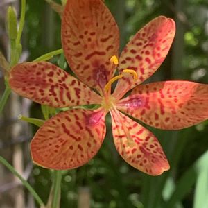 おはようございます♪ ♡今日のお花♡ 🧡檜扇(ヒオウギ)🧡 アヤメ科アヤメ属(旧ヒオウギ属) 多年草 開花期7〜8月