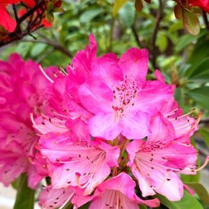 おはようございます☀️ 今朝は 寒い朝になりました。 今日のお花 シャクナゲ 華やかなシャクナゲが咲いていました😊 1枚目には うしろに赤いツツジも写っています🪷