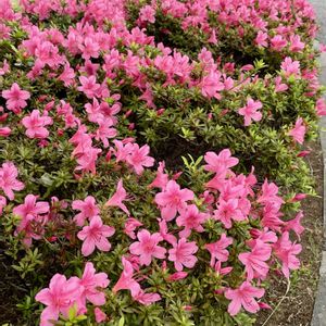 おはようございます☂️ 今日のお花 サツキ 歩道にピンク色のサツキが咲いていました。 たくさん咲いていて あでやかでした😊