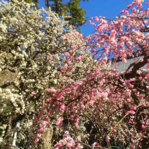 紅白の垂れ梅 五分咲き位だけど香りは春にいざなってくれます~👍 藤沢常立寺にて