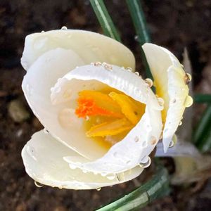 mimozaさんの 🏷雨粒シリーズ☆ 参加します🤍 初参加だった様な❓ 雨粒で無く雪❄️粒⁉️ 寒咲クロッカス 今日あんまり可愛いんで2回投稿しちゃった🤣