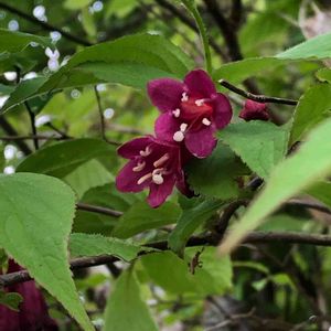 5/26に咲いていた花 ベニウツギ(スイカズラ科) 濃い紅色の、漏斗状の花を咲かせます☺️ 徳島・黒沢湿原にて