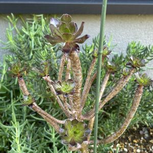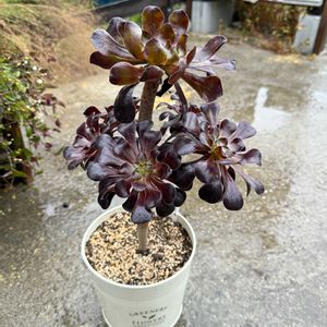 🟤黒法師(クロホウシ)🟤 別名アエオニウム ベンケイソウ科 地中海沿岸原産 多肉植物 冬に成長し、夏は休眠しているそうだ 種類もいろいろあるのかな。 近所の店先に忘れられたように転がって出しっぱなしになってる。冬はしまうのだろうか? 薔薇のようなの形の赤茶色の多肉植物。 お洒落さんね。
