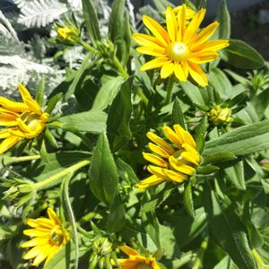 ルドベキア キク科 ルドベキア属 我が庭の~ ヒマワリです🙌 造花のような花 ですが····· 先日の豪雨で ミニヒマワリが 全滅したので ガッカリしました🥺