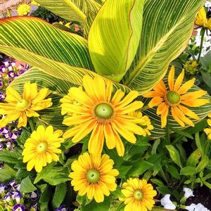 歩道の花壇 まるで目だまのようなルドベキアの花 見られているみたいな▫▫ (ちょっと自意識過剰かな😂)
