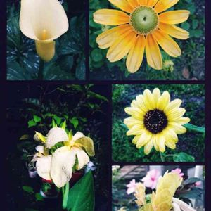色鮮やかな花に気分もルンルン♪ カンナ ルドベキア アガパンサス コラージュのサイズが一致してなくてちょっとだけ顔覗かせているカンナちゃんです*