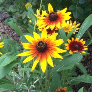 夕暮れ時のルドベキア タカオ 猛暑もへっちゃらだね☀️ 最近バッタの赤ちゃん軍団が 色んな葉っぱを食べまくってます🌿💦 穴だらけで困ったもんだ😓