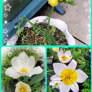 頂き物のチューリップ🌷が2種類目が咲きました~⤴️ 🤍いチューリップ🌷でした~🎵 後何かなぁ~と思ったら💛のフリージアでした~🎵 我家の庭を彩ってくれます✨☀️✨