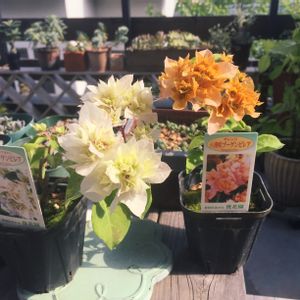 初ブーゲンビリア😆 オレンジとホワイト(ピンクぼかし) 植え替えしないとな… 暑っついな〜☀️