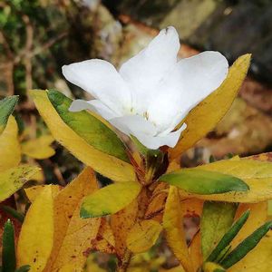 🍁エゾムラサキツツジ 2🍃🍂 ✳️11月25日撮影 すっかり黄紅葉🍁した エゾムラサキツツジに 花が一つだけ咲いてました💠 黄色の葉に白い花・・・ 白さが際立って とても✨綺麗✨