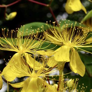 この時期、ほぼ同時に咲く、紛らわしいヒペリカム(オトギリソウ属)4題。 左上:キンシバイ(金糸梅) Hypericum patulum オトギリソウ科オトギリソウ属 中国南西部原産。 花弁が完全に開かず、杯状に咲く。 輪径は4cm弱。 右上:タイリンキンシバイ(大輪金糸梅) Hypericum ×hidcoteense cv. ‘Hidcote’ オトギリソウ科オトギリソウ属 次に紹介するセイヨウキンシバイとHypericum × cyathiflorumの交配種。ヒペリカム ヒドコートとい う名で知られる他、キンシバイと混同されたり、キン シバイの改良品種とされたりしているが、キンシバイ は交配親にも含まれていない。 輪径は約7cm。花弁は完全に開く。 左下:セイヨウキンシバイ(西洋金糸梅) Hypericum calycinum オトギリソウ科オトギリソウ属 ブルガリア、トルコ原産。 別名ヒメキンシバイ。雄しべが長く、キンシバイより もビヨウヤナギに似ている。ビヨウヤナギは雄しべが ゆるくカールしているが、セイヨウキンシバイの雄し べは直線的。 輪径は8cm強。 右下:コボウズオトギリ(小坊主弟切) Hypericum androsaemum オトギリソウ科オトギリソウ属 西~南ヨーロッパ、イラン北部、北西アフリカ原産だ が、世界中で帰化、1部の国では侵略的外来種として 警戒されている。切り花等として鑑賞用に栽培される が、花よりも赤い果実の付いた状態で利用されるのが 普通。 輪径は2~3cm、花弁が大きく後ろに反る。 あと紛らわしいのはビヨウヤナギくらいですが、残念ながらうちにはないので。