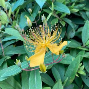 ビヨウヤナギ(未央柳) つけま、、つけてる…⁉︎ 羨ましい位のゴージャスなまつげ✨ではなく雄しべ。。 花弁より大きな蕊は1束30本位×5束!もあるそう… 唐の長安の宮殿「未央宮」にかかわる名前で、柳の葉に似ていることから未央(ビヨウ)柳🌿 中国原産🌿中国名は金糸桃♪