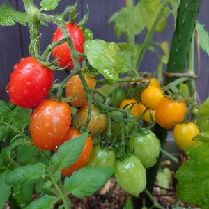 我が家のミニトマト🍅が勢揃いしました。 順不同で、 CF千果、トスカーナバイオレット、フルティカ、アイコ、プリンセスアイコ、イエローアイコ、オレンジアイコ、カナリーベル、おみつ、チョコアイコ、オレンジ千果の全11種類です。