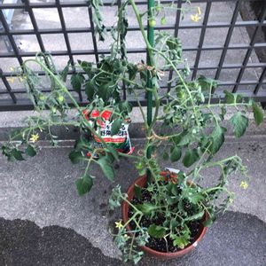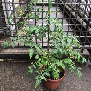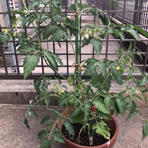 ミニトマトのアイコです。 脇芽がわからなくなってジャングルと化しました。 元気ならいいやと放任主義です。