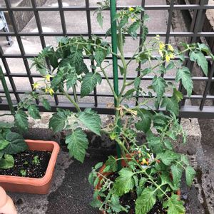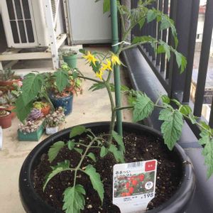 遅かったのですが。。 トマト5月20日に定植しました 第一花房が花がやっと咲いてたので。 下葉を取って深植えしました 今年は二本仕立てに挑戦しようと思います! いま第一花房の下の脇芽が伸びてきて、つぼみがつきました^ ^ 主枝は三段目まで花がついています! 誘引の仕方がわからない…! 日当たりがそんなによくはないので、ちょっとヒョロいのが気になってます。。 植えたばかりだから少し様子見かな…? 肥料あげた方がいいのか悩みます うまくそだつといいなー