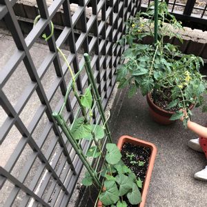 6/2 お、お主!!また不法に住居侵入している ではないかーー!😭😭 支柱短いかなーって買う前に思ったけど、 やっぱり…😭😭また買わんなんかな… あと、ついでに固形の追肥投入! 大葉ちゃんまた早く芽を出さないかな♡