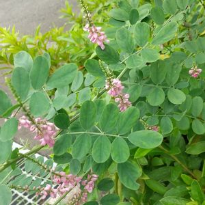 コマツナギかな? 近くの山では見たけど、街中の花壇で見たのは初めてです。 種が運ばれたのでしょう🕊️ ハギに似ています。