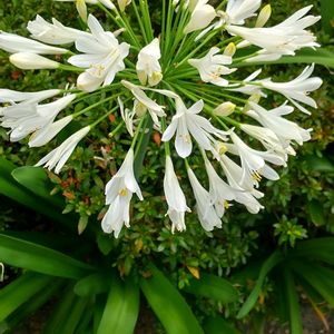 猛暑中~お見舞♪申し上げ~ます🍧🍬🍬🍬🎶 COOL🆒な白アガパン 炎天下 冷んやり🧊の一輪でした。 昨日の葉山の🎆大会 45分の長い🎆見たのは久しぶりでした。ベランダ鑑賞ですけど😅 この辺は🏖️の近いからか朝晩は やや凌ぎやすく、風もあります。 強い西風で花がやられますが。 これから命懸けの出勤いたします💦 皆様 ご自愛くださいませ🍀