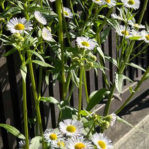 散歩道での出会い🚶🚶♀️ 垣根越しに ピーンと伸びて 整列した 可愛いヒメジオン🤗🎵