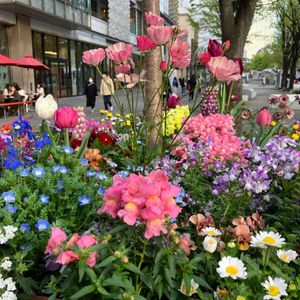 国立駅前の花壇🌸🌼☘️ 春のお花に 色採りよく 植え替えられて〜……♡👀🎶💖