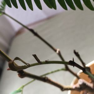 H28.10.12 エバーフレッシュの葉っぱがポロポロ落ちてきたから切って再生を待ってみてたら… ある朝、硬い茶色の芽が伸びて見たことある形になってきた!! 応援したくなる*ଘ(੭*ˊᵕˋ)੭* ੈ✩‧₊˚
