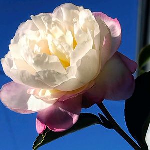 青空に咲くひめつばき…♡♡♡ 窓辺の花は優しそうでした~૮₍。• ᵕ •。`₎ა 🤍゚・。𓂂ꕤ*.゚。・゚🤍゚・。𓂂ꕤ*.゚。・゚🤍゚・。𓂂ꕤ*.゚。・