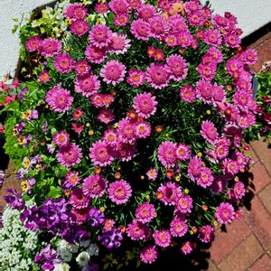 マーガレットストロベリーホイップ 去年地植えにした株が 大きくなり庭を彩っています 満開になりました