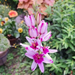 イキシア 桃の木のしたに咲いています
