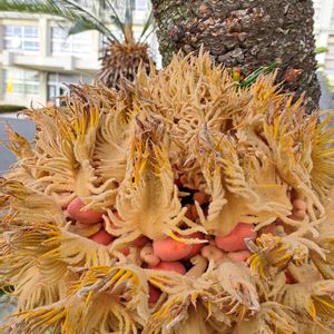 蘇鉄 雌花 古代植物 小学校で咲いていました👀興味津々 1枚目 オレンジ色の種がびっしり詰まっています 種は指で簡単につまみ出すことができます ふわふわのベッド 2枚目 一年後の種の様子 しっかり乾燥するまでついています 10年周期で花が咲くとか‥ 蘇鉄について色々調べたくなりました