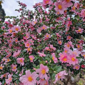 山茶花 たまに車で通る道でさいていました🚐 6年くらいこの道を通ってきたけど、一度も気づいていなかった。いつの間にこんなに咲いていたのかな 圧巻の姿 季節の楽しみがまたひとつ増えた😊 車を路肩に停めてパシャ🤳