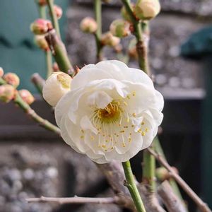 白梅 成人の日おめでとう👏 鉢植え 蕾たくさん(^o^) 一番に咲いた花📸梅のいい香りがします