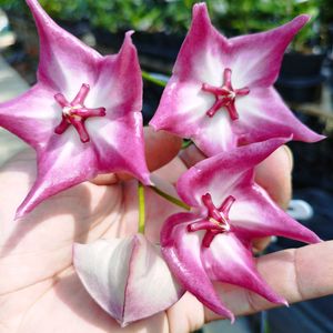 おはようございます♪ 今朝の #沖縄 の天気は晴れ! #ホヤ #マクギリブレイ ( #Hoyamacgillivrayi )開花! 今回は明るいラインレッドに中央部が大きく白抜け。 暑い時期はこんな色彩になることが多いですね。 ホヤ #メリフルア ( #Hoyamelihulua )落花直前。 こんなに退色するまで開花してくれました! お疲れ様♪ #畑仕事