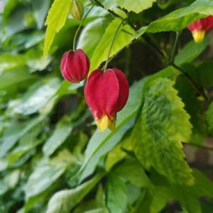 ☝、ウキツリボク。 枝がビヨ~んとのびて緑のカーテンの朝顔のツルがこれまた枝にからまりすごいことになってます。 緑の葉っぱの中に赤いのがコロッと見えて可愛らしいんですけどね。 (ФωФ)だんだんジャングルになってく…