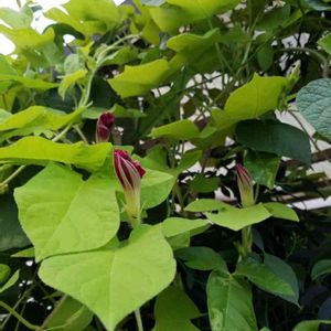 (ФωФ)明日、咲くよ~♪ 朝方雨が降って今朝の朝顔は、クシャクシャなやつばかりでした。 明日は、ぷファ~っと咲いてほしいな。