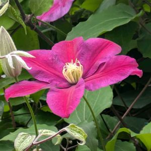 ハッキリとしたピンク色に黄色の花芯が目を惹く華やかなクレマチス (ノ◕ヮ◕)ノ*.✧ たまにはこういう子も良いよね💕 お迎え26番目のクレマチス 【ビルドリオン】 ジャックマニー系 新枝咲 強剪定